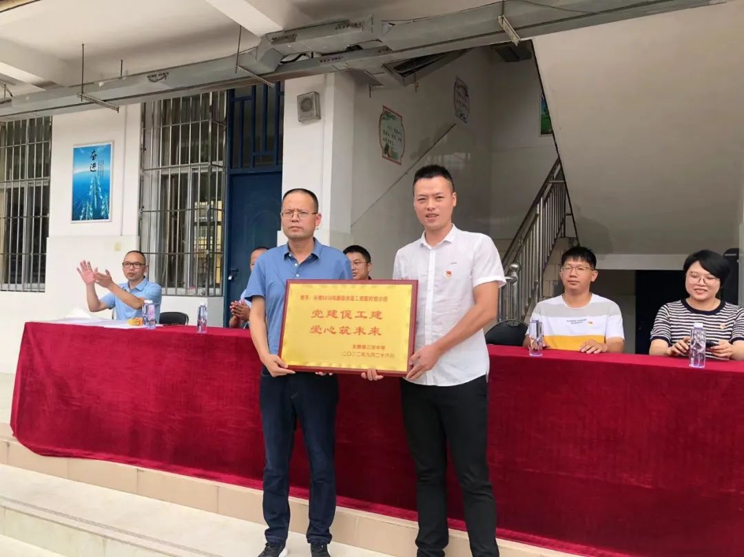 第三個(gè)議程:永泰S213線(xiàn)路面改造工程臨時(shí)黨小組與中共永泰縣三洋中學(xué)黨支部舉行黨建共建授牌儀式。